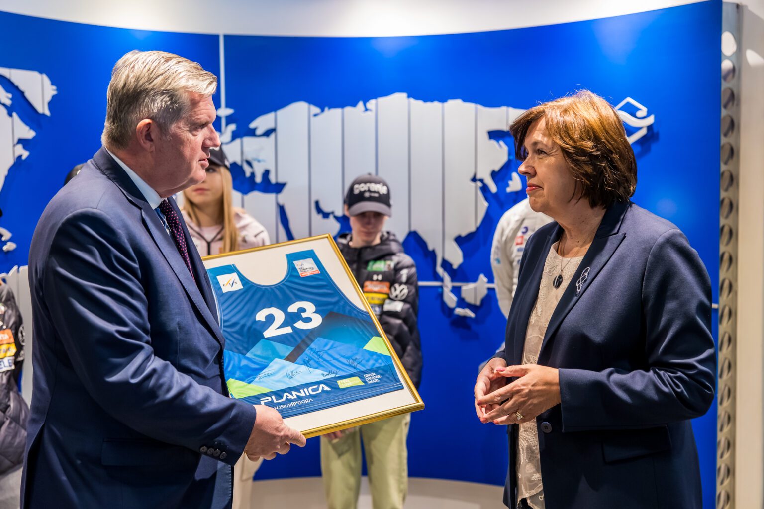 Družba je najprej gostila slovenske smučarske skakalce in skakalke, za katerimi je sezona polna zmag, rekordov in odmevnih uspehov. Med vrhunci izstopa zgodovinski dosežek, ko sta brat in sestra prvič hkrati osvojila veliki kristalni globus. Temu velja dodati še nov svetovni rekord v Planici, prestižnega zlatega orla ter osvojena odličja na olimpijskih igrah. V pristanišču so jih sprejeli člani uprave družbe Luka Koper, predsednica uprave Nevenka Kržan ter člani uprave Gregor Belič, Gorazd Jamnik in Vojko Rotar – delavski direktor. Predsednica uprave je ob tej priložnosti poudarila, da vrhunski šport poleg izjemnih posameznikov zahteva tudi ustrezne pogoje, sistemsko podporo in dolgoročno vlaganje: »Zavedamo se, da takšni vrhunski uspehi niso naključje. Zato smo ponosni, da lahko kot zlati sponzor podpiramo slovenske reprezentance v smučarskih skokih in nordijski kombinaciji ter soustvarjamo pogoje za vrhunske dosežke.« Športniki so se ob obisku srečali tudi z zaposlenimi in se jim zahvalili za dolgoletno podporo.